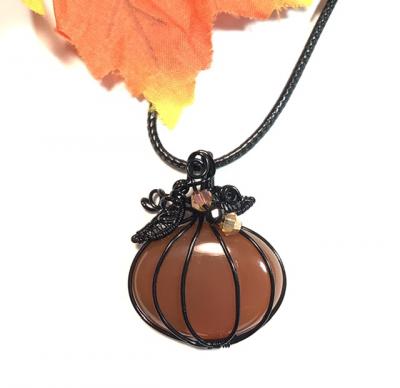Oval carnelian cabochon wrapped with black wire pumpkin pendant. Comes with the 24” black cord necklace. Go to ..